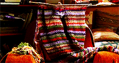 Knitting needles creating a scarf with the use of a Knitting Charm